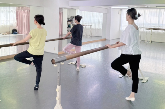 体をほぐしながら姿勢を整え、自然とバレエの動きにつながっていきます。